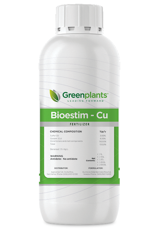Liquid Copper in Cu – Pent hydrated state. It intervenes as a microelement in enzyme system multitude, especially in the production of phytoalexins, providing noticeable improvement in the self-defense system preventing the plant from fungi