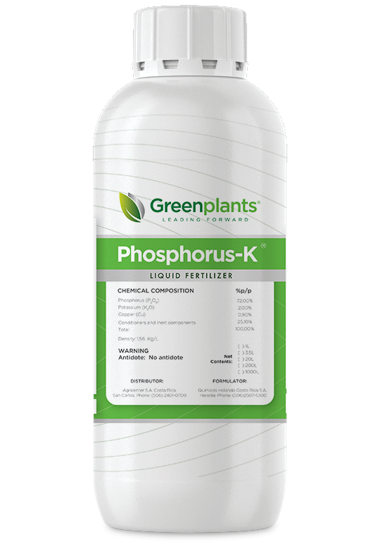 Liquid source of phosphorus in the form of P2O3 and potassium with a high capacity for translocation that provides the plant with energy and the capacity to develop natural self-defense mechanisms known as “Phytoalexins” in addition to a potassium ion of rapid assimilation that improves capacity for photosynthesis.